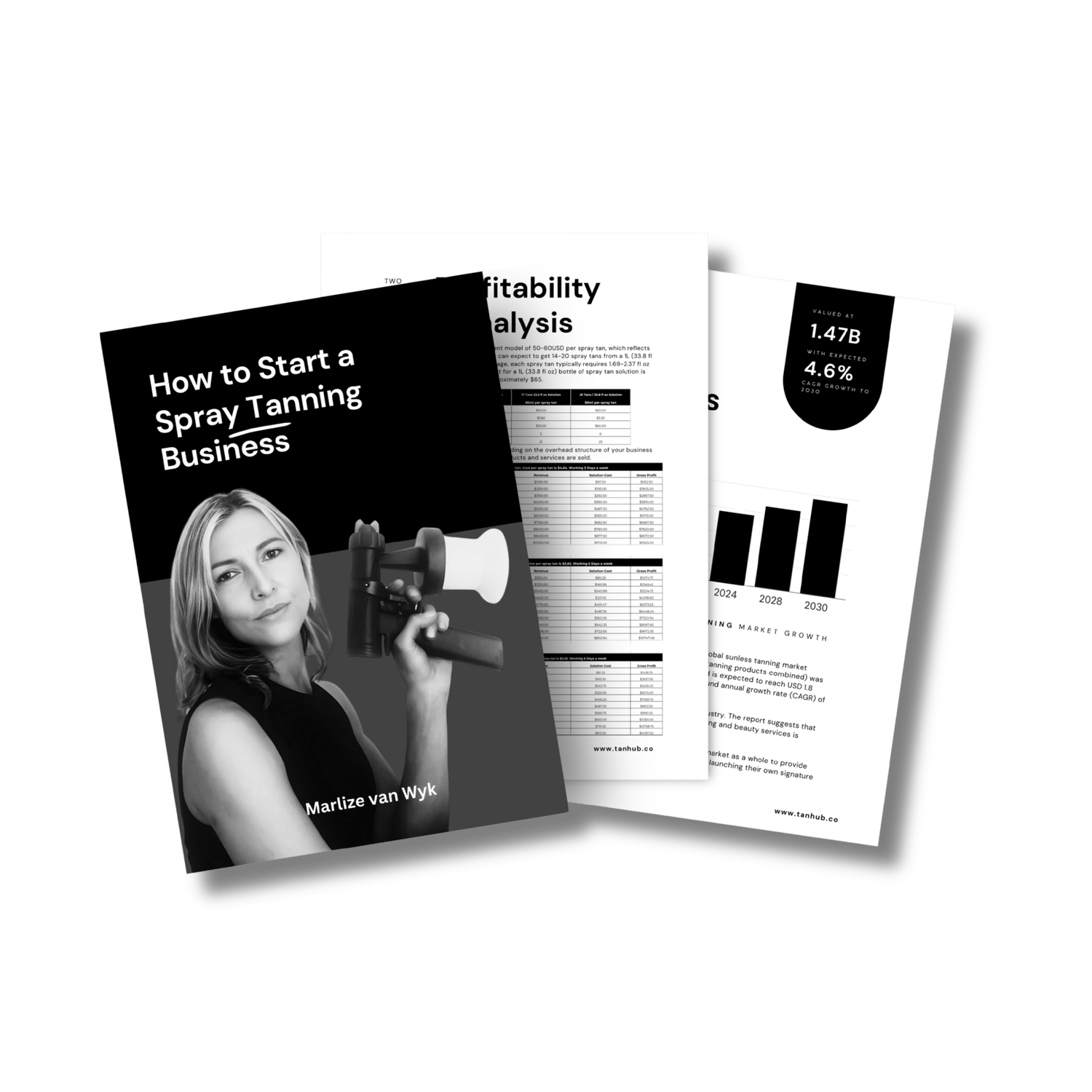 This in-depth 35 page guide walks you through everything you need to get started — From 10 different AI resilient spray tan business model ideas — to profitability insights, market research, trusted equipment recommendations, and essential business must-haves. Inside the guide, you’ll also find a complete startup checklist to help you stay focused, confident, and on track. Plus, as a bonus, you'll receive an exclusive 34% discount on our in-depth training manual, The Art of Spray Tanning™ — the ultimate guide to becoming a confident spray tan professional.